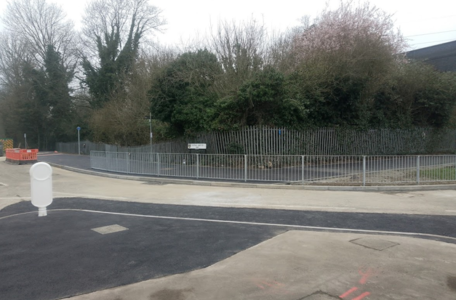 The shared use path between the Dalton Way Railway Viaduct and Thomas Sawyer Way has been widened and resurfaced. The short shared use path alongside the North side of Thomas Sawyer Way to the new crossing point is complete. Safety barriers have been installed. The original crossing island is now just a traffic island