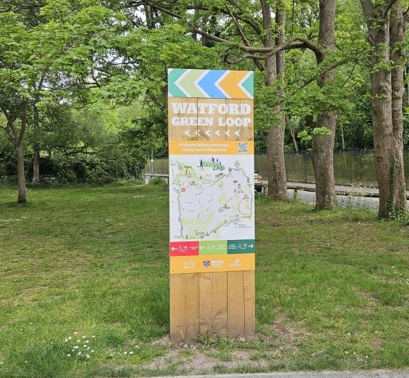Along Ebury Way until it joins the Watford Green Loop. Then follow the loop clockwise through Cassiobury Park, Watford town centre, back to the Abbey Way and round to return on the Ebury Way.